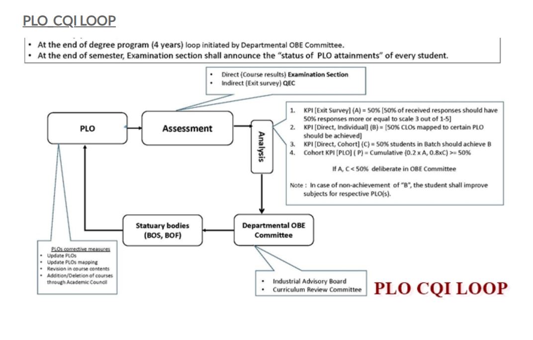All CQI activities comply with Outcome-Based Education standards set by PEC/HEC.
